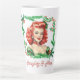 Fun latte mug for the Holidays features a retro redhead pinup girl with Christmas holly frame and "Naughty & Nice" text.