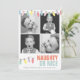 This simple and modern "naughty or nice" christmas holiday 4-photo collage card features a white background with christmas lights in pastel colors. The reverse side features a light blue background with patterns of candy canes. Personalize for your needs. You can find matching products at my store.