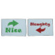 This festive and funny holiday pillow case set features a cute Christmas theme over a soft blue background sprinkled with snowflakes. The word "Naughty" is printed in a whimsical red glitter style font, with a matching arrow pointing to the left on one pillow case. The other pillow case features the word "Nice" printed in a green glitter font with a matching arrow pointing right. Show whether you think you've ended up on the naughty or nice portion of Santa's list.