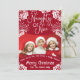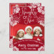 What sets this greeting card apart is its thoughtful design. It offers space for five of your own cherished photos, making it an ideal canvas to showcase the beauty of your family, friends, and the moments you've shared throughout the year. Each photo frame is bordered with pure white illustrations of ivy leaves, sprigs, and delicate floral buds, which serve as a lovely frame for your memories. The elegant colour scheme of red and white adds a touch of classic charm, making it the perfect way to send your warmest holiday wishes to those you hold dear.