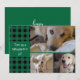 Add your mischievous pet's photos to this humourous holiday card with the funny saying THERE WAS A NAUGHTY LIST?. Green and black buffalo check plaid pattern. The greeting HAPPY HOLIDAYS and your name is on the back. PHOTO TIP: For fastest/best results, choose a photo with the subject in the middle and/or pre-crop it to a similar shape as shown BEFORE uploading. Contact the designer via Zazzle Chat or makeitaboutyoustore@gmail.com if you'd like this design modified, on another product or would like coordinating items.