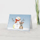Funny Pembroke Welsh Corgi Christmas Card for dog lovers. Next to a snowman sits the corgi, with a big cheesy grin. What's that on the snowman? Oh no, a big yellow stain! The dog peed on the snow creation! Inside reads, "May your holiday season be filled with only pleasant surprises!" Hilarious dog holiday card.