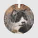 Black and white kitty cat forgets about naughty and nice and gives into temptation and plays with the Christmas decorations cat lovers acrylic Christmas holiday ornament