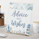Nautical Advice and Wishes Baby Shower Sign featuring a nautical theme with sea, sea shells, boats, and lighthouse artwork