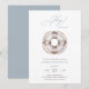 Invite your friends and loved ones to share in the joy of your little sailors arrival with this nautical baby shower invitation, featuring a simple and modern watercolor lifesaver and soft blue accents. Ahoy!
