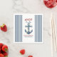 Set sail for a celebration with our charming nautical-themed party napkin. Featuring a beautiful anchor design, these napkins are perfect for welcoming a little sailor. The design showcases delicate and vibrant watercolor illustrations, including an anchor and subtle nautical elements, evoking the tranquillity of the sea and the excitement of a maritime adventure. Classic navy blue and white stripes, combined with soft pastels, create an inviting seaside atmosphere. Personalise the napkins with the mum-to-be's name and the event date to make them uniquely yours. These custom baby shower napkins will surely delight your guests and set the perfect tone for your boy's baby shower.