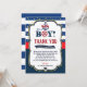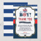 These great Nautical Baby Shower Thank You Cards feature an anchor with "It's a Boy!" headline and a blue, red, navy and gold colour combinations. Personalise this awesome Nautical Baby Shower Thank You Card with your thank you message easily and quickly, simply press the customise it button to further re-arrange and format the style and placement of the text. Includes a matching back of invite design.