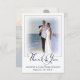 Send pre-printed wedding thank you messages or handwritten notes of appreciation with these nautical themed photo thank you cards featuring 2 photos (one on each side) and a modern handwritten script typography title accented with an anchor in navy blue and white. ASSISTANCE: For assistance with design modifications or personalisation, transferring the design to another product or you would like coordinating items, contact the designer BEFORE ORDERING via Zazzle Chat or makeitaboutyoustore@gmail.com.
