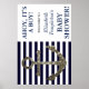 Ahoy, It's a Boy, nautical baby shower welcome sign/poster. Finish off your baby shower decor with sailing themed placemats. All of the wording can be personalised. This welcome poster features a printed sparkle looking anchor on a striped nautical background.