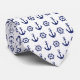 Navy and white nautical anchor and steering wheel patterned neck tie.