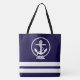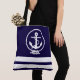 Nautical Anchor and White Stripe Pattern Fun Tote Bag