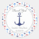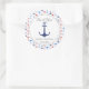 Round sticker for baby shower favour with nautical anchor pattern design.