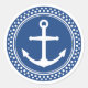 Nautical anchor, blue background with dot border classic round sticker