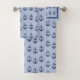 Nautical anchor blue pattern bath towel set. Dark blue nautical on light blue background design.
