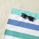 Perfect for a day at the beach, this nautical themed towel features aqua, seafoam green and medium blue stripes on either end. In the centre is a blue anchor in a circular design bordered by rope. Above the anchor is your family name and below the year established for you to personalise. We enjoyed creating this one for you. Enjoy!