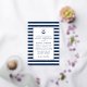 Modern Elegant Nautical Anchor Wedding Invitation. White Anchor with Gold Foil Ring around it. Navy Blue Background. Blue and White Stripes. Gold Foil Frame.