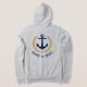 A custom designed (front and back) nautical boat anchor, gold style laurel leaves and a gold star with your personalised name or boat name on a woman's grey blue zip-up hoodie. Several colours to choose from. Makes a great gift.