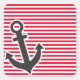 Nautical Anchor; Cadmium Red Stripes; Striped Square Sticker