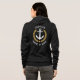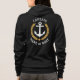 A custom designed (front and back) nautical boat anchor, gold style laurel leaves and a gold star with Captain rank or other title and your personalised name or boat name on a woman's black zip-up hoodie. Several colours to choose from. Makes a great gift.