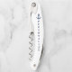Custom nautical anchor corkscrew wine bottle opener and foil cutter. Includes folding foil cutter knife and beer cap opener. Handy pocket size opener with personalized text or thank you text. Classy typography template. Create a unique Birthday gift and party favor ideas for sailor, boat captain, skipper, sailing friends, yachting family, co worker, employee, groom, best man, groomsmen, couple, bride, newly weds, bridesmaids, crew, team etc. Stylish curved design with chic lettering. Special boating presents for him and her. Also nice for Christmas Holidays, business, wedding or company. Change quantity to get the cheap bulk price. Add your own monogram letters, funny quote, family name, boat name or saying. Upload your own logo or image optionally. Navy blue and white design template. Double sided vertical print.