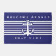 Nautical Anchor Design Navy Blue White Stripe Door Doormat