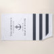 Nautical beach towel features a coastal style boat anchor and stripes design. Personalise the custom text with a family last name and beach house (or other title) with the year established and location. Hale navy blue and cotton white colour scheme.