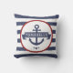 Nautical Anchor Family Name Navy Blue Stripes Cushion