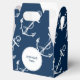 Nautical party box with a white anchor anchor repeating pattern. Great for kids birthday.