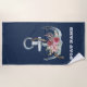 Nautical Anchor Floral Boat Name Navy Blue Beach Towel