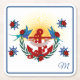 Elevate your nautical theme with this bright blue , red and white drink coaster featuring an anchor and red flowers.