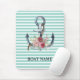 Nautical,Anchor Flowers Mint Green Stripes Mouse Pad