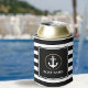 Nautical Anchor Gold Black Striped Boat Name Can Cooler