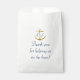 Continue the classic gold and navy blue nautical theme with these wedding favour bags. A gold anchor is flanked with the monograms of the bride and groom. The clean decorative navy blue text thanks your guests for helping you celebrate your special day. Feel free to change the text and add your own special thoughts.