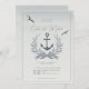 Elevate your wedding celebration with this captivating anchor and herald wedding invitation, adorned with graceful seagulls. This elegant design, featuring a classic colour scheme of blue and grey, evokes a timeless maritime charm that's perfect for seaside nuptials.