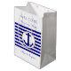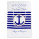 Nautical wedding welcome paper bags with specific Key Largo, Florida destination. A map on the back has a big star over the Key Largo area. I will make a map with your Florida destination - just contact me at millhill11@gmail(dot)com. Or choose a bag without the map image. Wide navy blue stripes and a big anchor on the front, with two additional place for text on reverse. Include the dates of the event and name of the venue.