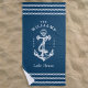 Nautical Anchor Lake House Navy Blue beach towel features a large boat anchor in the centre of the towel over a navy blue background with striped ropes above and below the design. Personalise it with your family name and the date established. Perfect for a lake house, seaside beach homes, waterfront cottages and family reunions.