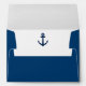Nautical anchor liner navy blue and white wedding envelopes. Trendy maritime / sailing theme design for wedding, bridal shower, engagement, anniversary, birthday, baby shower etc. Custom envelope colour on the outside. Lined with boat / ship anchor logo.