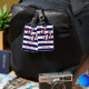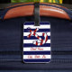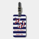 This nautical anchor luggage tag will look cute and fashionable whether flying to the beach or cruising the seas. The design features a red and white diagonally striped anchor on horizontal navy and white stripes. Customise with your name and address.