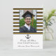 A Nautical Anchor Modern black yellow stripes graduation Announcement featuring a frame over your choice of photo. The backside features another photo and more details about your graduate.