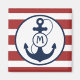 Red nautical stripes with navy blue anchor and monogram.