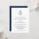 Nautical Anchor Monogram White Navy Simple Wedding Invitation