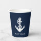 Nautical Anchor Navy Blue and White Boat Name Paper Cups