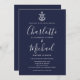 Nautical Anchor Navy Blue And White Script Wedding Invitation