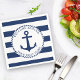 Navy blue and white nautical napkins with a template to type your boat name. Striped design is decorated with an anchor and rope illustrations.