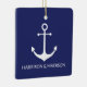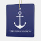 Nautical anchor navy blue and white custom boat name, family name, couple's names or initials Christmas Ceramic Ornament.