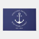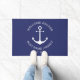 Custom Boat name or Family name, Welcome Aboard, nautical white anchor. white letters navy blue Doormat.