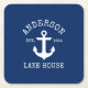 Nautical Anchor Navy Blue Family Lake House Square Paper Coaster