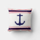 Nautical Anchor Navy Blue Red Stripes Cushion