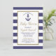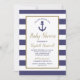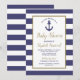 Nautical Anchor Navy Blue Striped Boy Baby Shower Invitation