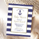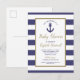 Nautical Anchor Navy Blue Striped Boy Baby Shower Invitation Postcard